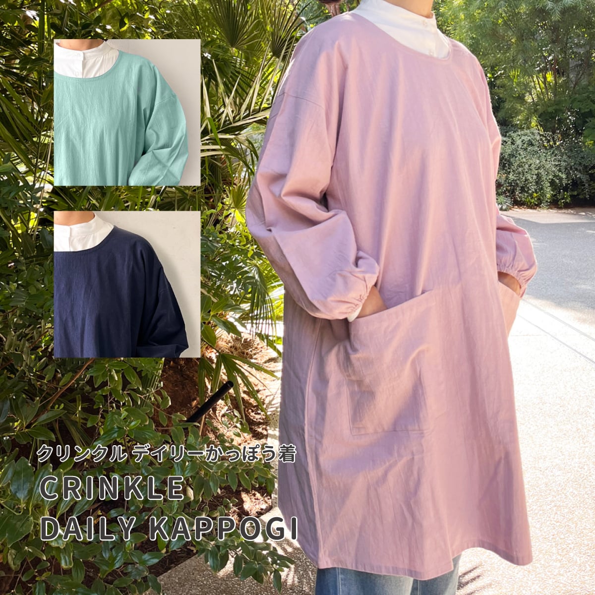 新登場のCrinkle dairy kappogiは、日常の調理をもっと楽に、快適に楽しむためのアイテムです!足さばきの良い丈感と被るだけの簡単着脱が特長で、誰でも手軽にスタイリッシュに着こなせます。